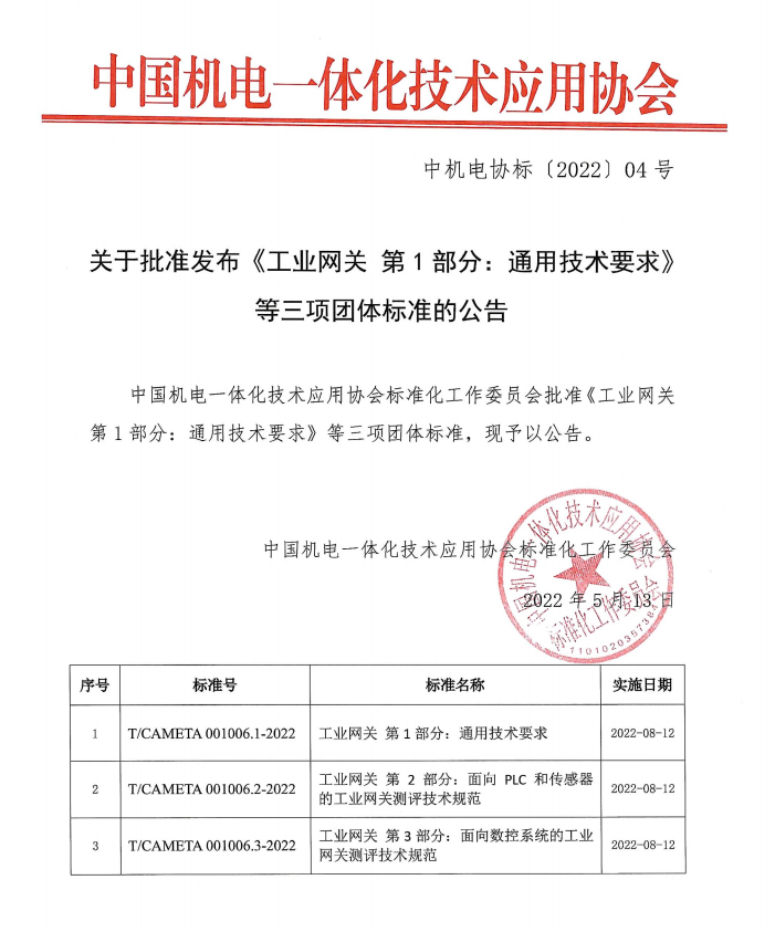 2022年5月13日,華辰智通核心參編的工業(yè)網(wǎng)關(guān)標(biāo)準(zhǔn),已正式通過審批!將于2022年8月12日正式實(shí)施!