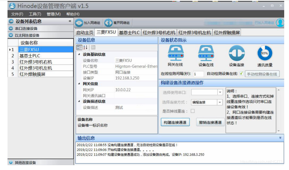 客戶端正常上線,網(wǎng)關(guān)及設(shè)備圖標(biāo)上線,指示燈亮,如圖,最小化窗口即可(不能關(guān)閉客戶端)。