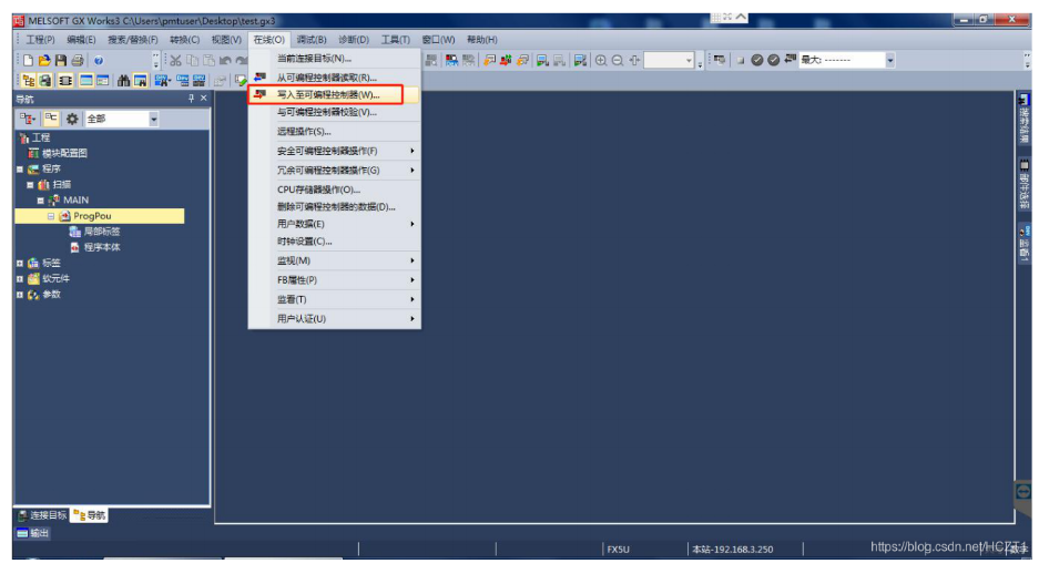 點(diǎn)擊【在線】下的【寫入至可編程控制器】。
