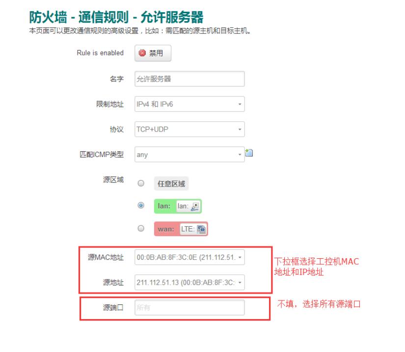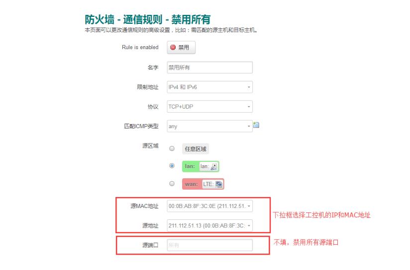 設(shè)置思路:首先添加規(guī)則禁止工控機(jī)訪問所有網(wǎng)絡(luò),然后再添加規(guī)則只允許工控機(jī)訪