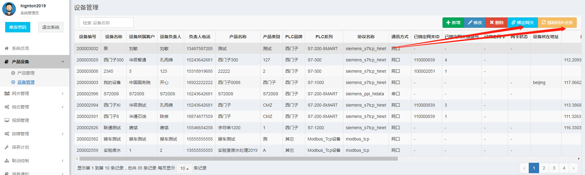 1. 點(diǎn)表中PLC的IP是否正確,以思普云平臺(tái)采集數(shù)據(jù)為例,思普云平臺(tái)的“產(chǎn)品設(shè)備”——“ 設(shè)備管理”處,選擇設(shè)備點(diǎn)擊【綁定網(wǎng)關(guān)】,設(shè)備IP填PLC的IP,再?gòu)?qiáng)制同步點(diǎn)表。